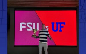 Turkey Tank is a yearly new idea pitch competition between UF and FSU. Contestants have 3 minutes to make the judges fall in love with their solution to a problem and take home the $500 prize and a really big turkey trophy.